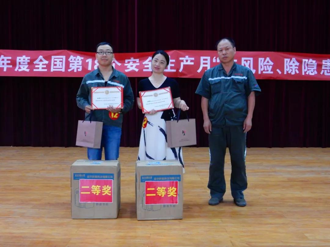 二等獎兩名,由生產(chǎn)部王部長為來自機動部的獲獎選手封曉琴和來自煉鋼廠的獲獎選手候寶強分別頒發(fā)榮譽證書及獎品,并合照留念。