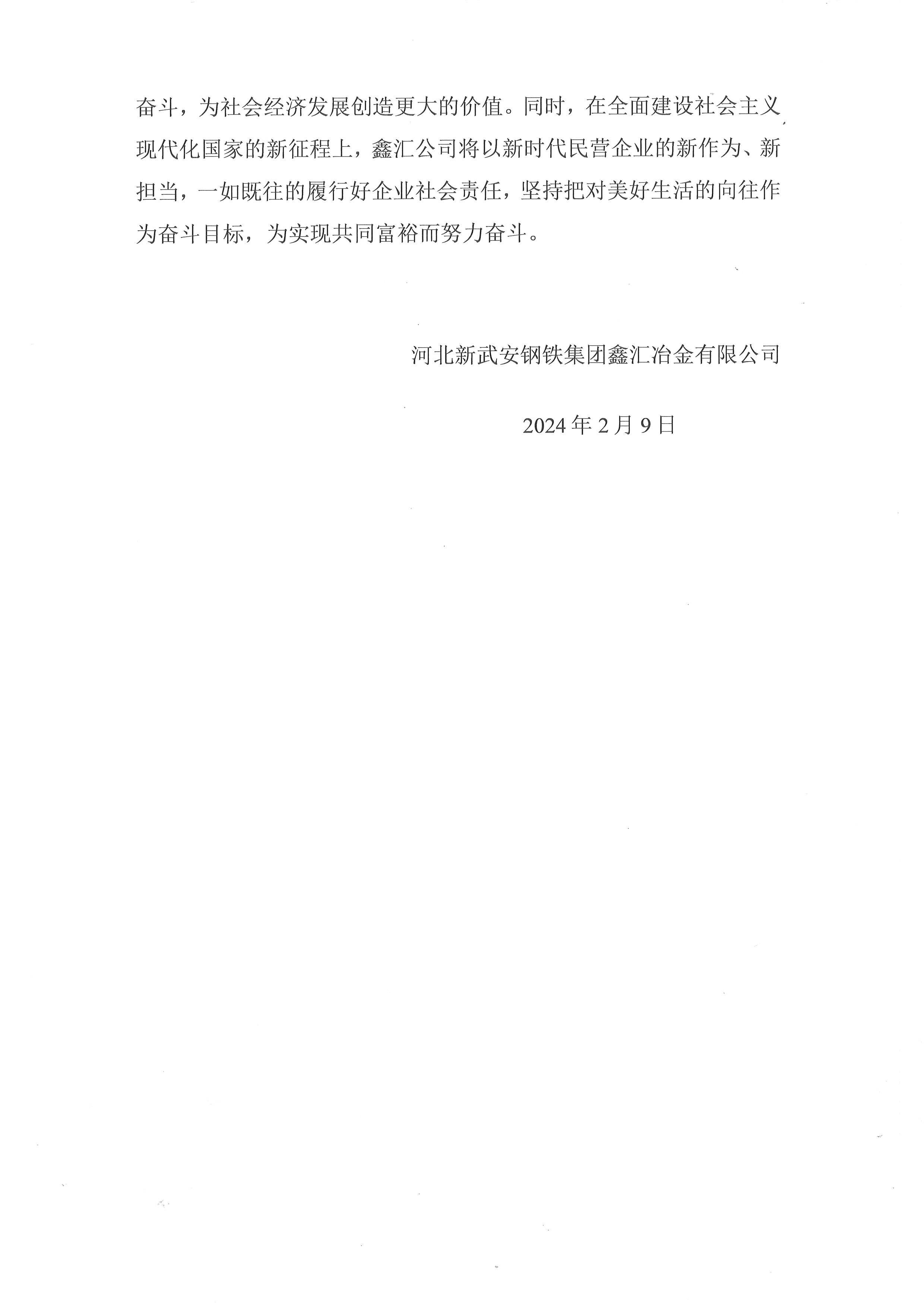 河北新武安鋼鐵集團(tuán)鑫匯冶金有限公司2023年度社會責(zé)任報(bào)告
